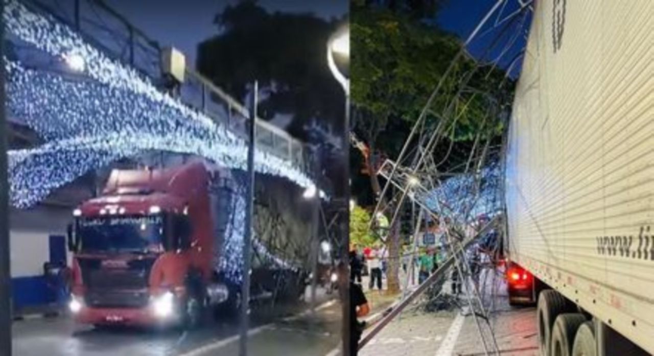 um caminhão destruiu parte da decoração de Natal em Embu das artes na grande SP em uma estruestrutura o veículo quebrou o túnel iluminado na praça central relatos de pessoas que testemunharam o acidente relatam que ele veio com velocidade alta para aquela região central onde caminhão ônibus não podem circular. a prefeitura em nota disse que irá refazer a decoração e que a população terá o Natal iluminado normalmente. já o dono do caminhão irá se responsabilizar pelo danos e multa . o fato ocorreu nesse dia 08/11 / 2023 uma semana antes do início das festividades de Natal na cidade