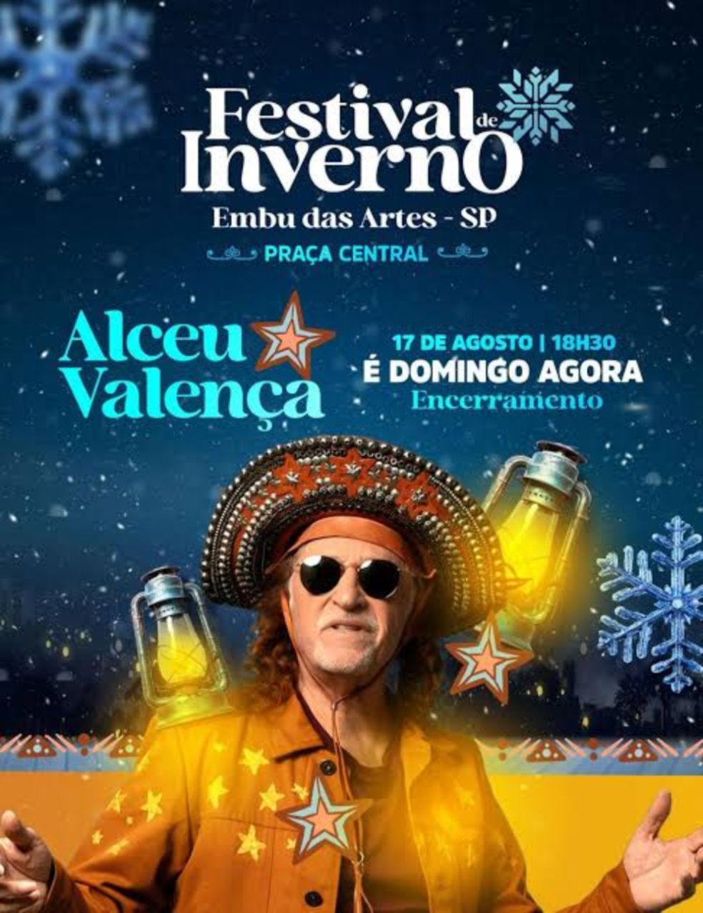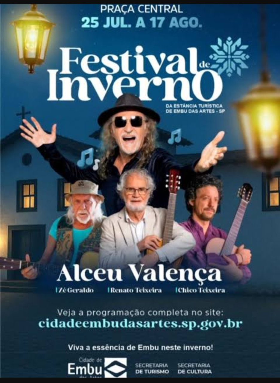 O 1º Festival de Inverno de Embu das Artes aconteceu de 25 de julho a 17 de agosto de 2025, com programação musical e cultural gratuita espalhada pelo Centro Histórico. O evento contou com shows de artistas como Alceu Valença, Renato Teixeira, Zé Geraldo e Chico Teixeira, além de atrações regionais, e combinou música com a tradicional Feira de Arte e Artesanato. Serão quatro palcos espalhados pelo centro recebendo shows gratuitos de diversos estilos — de moda de viola a jazz, passando por blues, rock, MPB e até música clássica.Com entrada franca a cidade tem a primeira edição do festival de inverno que será promovido anualmente