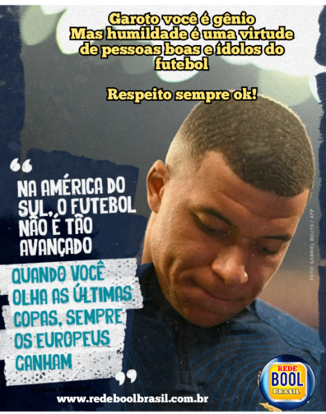 O jovem Mbappe gênio do futebol mundial falou que o futebol SulAméricano era fraco que nós não jogávamos como eles da Europa, hoje na final da copa a Argentina mostrou-se em campo a garra a humildade e talento é oque vale e só críticar algum clube ,pais , atleta ou seleção no futebol e na vida não é legal